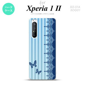 商品保証15;○ Xperia 1 II 5G スマホケース 背面カバー ストラップホール有り ハードケース バタフライ 蝶 レース 青商品コード:nk-xp12-1283対応機種名:Xperia 1 II ハ...