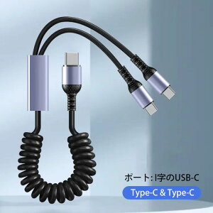 Type-C/Lighting PD急速充電ケーブル 2in1 仕様 コイル状 2in1 USB-A to Lightning & Type-C 充電ケーブル コイル状 2in1 USB-A to Type-C & Type-C...