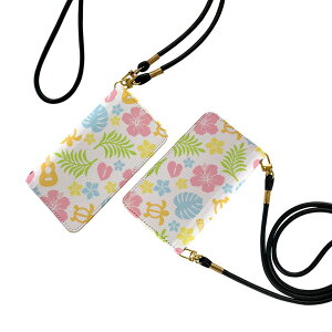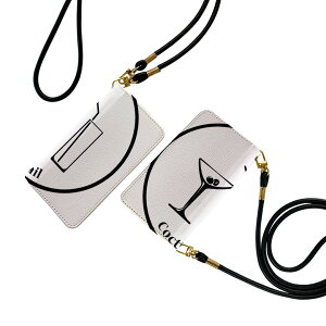 ショルダー付き手帳型スマホケース。シームレスな全面デザイン(内側は落ち着いたオフホワイト)。外側は高品質の人工革を使用。内側にはスマホを装着するケースが付属。機種専用のカメラホール仕様でケースを装着したまま。