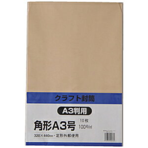 クラフト 角形A3 100g 10枚入 〔品番:KA3K100〕[ 注番:8560493]特長●丈夫なクラフト紙を使用した封筒です。●A3を折らずに入れられる封筒です。仕様●サイズ:角A3●色:茶●縦(mm):440...