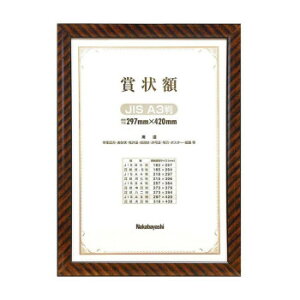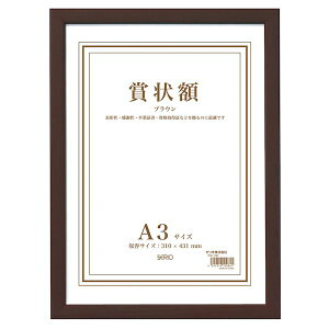 木製フレーム使用の賞状額です。 タイプJIS A3判 フレーム外径寸法(mm)463×340 厚さ(mm)14 収納用紙寸法(mm)420×297 枠色ブラウン 生産国インドネシア 重さ1240.000G …