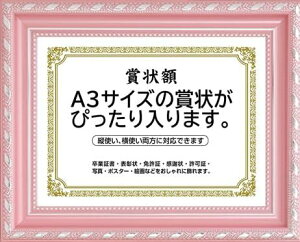 材質はポリスチレン。ひも・ひも止め金具、額吊り金具付き。 ■種類:賞状A3(大賞) ■セット用紙寸法:439・318 ■フレーム外寸法:475・351 ■フレーム内寸法:425...