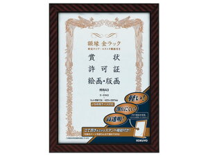 【仕様】●対応用紙サイズ:A3(大賞)(縦439×横318mm)●外寸:縦487×横366×厚み17mm●付属品:ひも、ひも止め金具、額吊り金具●タテ・ヨコ両用●賞状額縁●透明部分はガラスです。●個装...