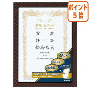 賞状や許可書等などを掲示するのにオススメです。表面がPET製なのでガラス製に比べ軽く、落ちても割れにくくなっています。●賞状寸法/420×297mm●外寸法/438×315mm●かかり幅/約5mm●質量/300g...