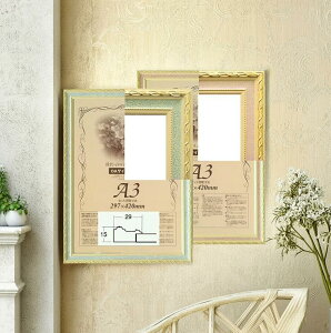 ウェルカムボード用額縁 5663 A3サイズ(420×297mm)専用 前面アクリル仕様 色 グリーン、ピンク。商品情報 A3(額縁裏面内寸422×299mm)。縁幅:29mm 縁厚:16mm。※3mm厚の作品まで額装可能...