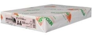 【仕様】●坪量:64g/m2(四六判換算:55kg)●紙厚:90±4μm●サイズ:A4●色:ライトピンク●対応プリンタ:モノクロレーザー、モノクロコピー、モノクロインクジェット、軽印刷。