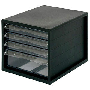 ナカバヤシ A4E-04B 一体型ボディタイプ A4レターケース4段(浅3段・深1段) ブラック●A4フラットファイルやクリアホルダーも収納可能●分類に便利なタイトルシール付き●底面に本体すべり止め付...