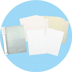 ます。 ●PPクリアポケット付 仕様 ●商品サイズ: 245×305×22mm ●セット内容: 画用紙 厚口×10、クロッキー用紙クリーム×10、クリアリングファイル×1、正方眼