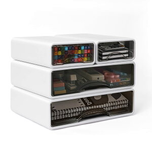 積み重ね可能な分別型収納ケースで賢く整理・整頓できていると心が落ち着き、仕事の効率がアップします。 2.引き出し前面にクリア素材のカバーがついているため、圧迫感を感じさせず、置く場所をより明るく見せてくれます...