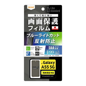 Galaxy A55 5G 用 フィルムLike standard フィルム 衝撃吸収 ブルーライトカット反射防止 抗菌・抗ウイルス 指紋認証対応 貼り付けがスムーズに行える二段階仕様。 ブルーライトを約40%軽減し...