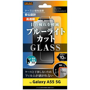 レイ・アウトGalaxy A55 5G Like standardガラスフィルム10HBLC光沢 指紋認証RT-GA55F/SMGケースと相性抜群の安心設計PETフィルムの約5倍の硬度で傷付きにくい。ブルーライトを約40%軽減...