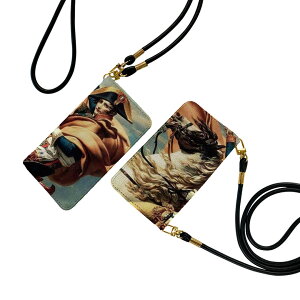 ショルダー付き手帳型スマホケース・シームレスな全面デザイン(内側は落ち着いたオフホワイト)・外側は高品質の人工革を使用・内側にはスマホを装着するケースが付属・機種専用のカメラホール仕様でケースを装着したまま