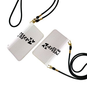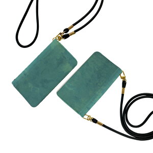 ショルダー付き手帳型スマホケース・シームレスな全面デザイン(内側は落ち着いたオフホワイト)・外側は高品質の人工革を使用・内側にはスマホを装着するケースが付属・機種専用のカメラホール仕様でケースを装着したまま