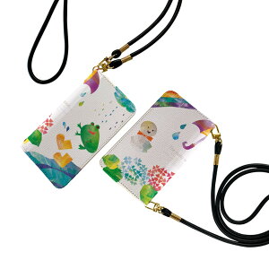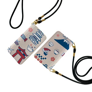 ショルダー付き手帳型スマホケース・シームレスな全面デザイン(内側は落ち着いたオフホワイト)・外側は高品質の人工革を使用・内側にはスマホを装着するケースが付属・機種専用のカメラホール仕様でケースを装着したまま