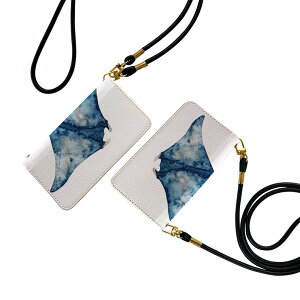 ショルダー付き手帳型スマホケース・シームレスな全面デザイン(内側は落ち着いたオフホワイト)・外側は高品質の人工革を使用・内側にはスマホを装着するケースが付属・機種専用のカメラホール仕様でケースを装着したまま