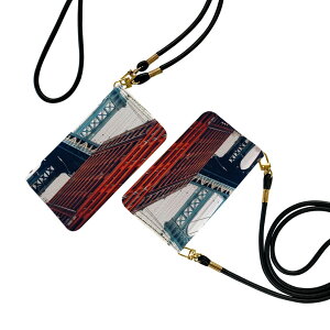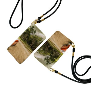 ショルダー付き手帳型スマホケース・シームレスな全面デザイン(内側は落ち着いたオフホワイト)・外側は高品質の人工革を使用・内側にはスマホを装着するケースが付属・機種専用のカメラホール仕様でケースを装着したまま