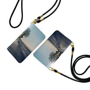 ショルダー付き手帳型スマホケース・シームレスな全面デザイン(内側は落ち着いたオフホワイト)・外側は高品質の人工革を使用・内側にはスマホを装着するケースが付属・機種専用のカメラホール仕様でケースを装着したまま