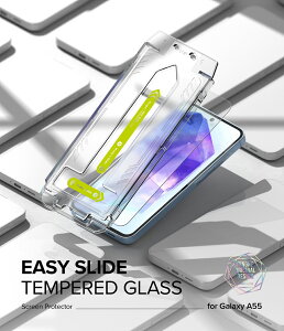 対応機種 Galaxy A55 5G SC-53E (2024) 対応です。 Easy Slide Tempered Glass 指紋、油汚れ、湿気に強いオレフォビアコーティングの9H硬度フルカバー強...