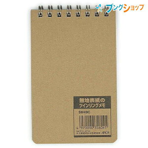 無地表紙メモ 茶 SW49Cサイズ A7変型 119×76mm 内容 6ミリ罫×16行 引流し罫 ツインリング34枚 特徴 無地クラフト表紙のポケットサイズA7ツインリングメモ帳 シールやイラストで自...