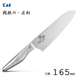 貝印 KAI AB5156 関孫六 匠創三徳包丁 165mm。継ぎ目のない、一体構造のオールステンレスタイプ。KAI独自の設計により、ハンドル内部まで刀身を通すことでハンドルと刀身のバランスの良さ、抜群の耐久性を実現させました...