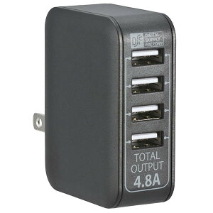 ACアダプター USB電源タップ4ポート。高出力 合計最大4.8A。各ポート最大2.4A高出力。おまかせ充電 どのポートに接続しても機器を自動で見分けて最適な電力で急速充電します。