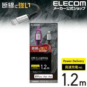 iPhoneの高速充電に対応。Lightningコネクタを搭載したiPhoneなどとUSB-Cポートを搭載したパソコンや充電器を接続し、充電・データ転送ができる高耐久タイプのUSB-C to Lightningケーブル。