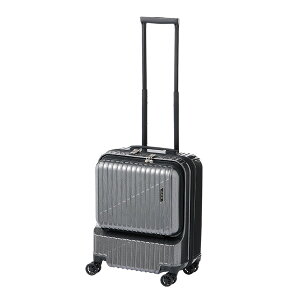 ファスナータイプのハードケーススーツケース。フロントポケットタイプでPC収納に対応。機内持ち込みサイズ。