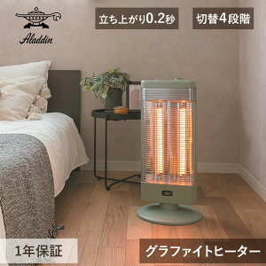 0.2秒ですぐ暖かいアラジンのグラファイトヒーター1000W自動首振り 4段階パワー切換で、広範囲に暖かい!☆特許技術のグラファイトヒータ アラジン独自の技術である「グラファイトヒータ」は、0.2秒で立ち上がり、最高温度は1300℃。