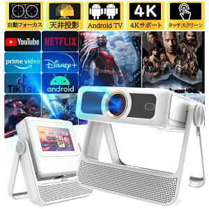 プロジェクター 家庭用 小型 4K対応 1080P高画質 自動台形補 Android TV 11.0 16000lm 5G wi-fi 6 対応 天井 ホームシアター 子供 壁 コンパクト バッテリー内蔵...