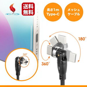 180°+360°回転するコネクタ採用 操作性と耐久性を向上させたUSB Type-Cケーブル PD100W対応 1m ~特長~ ・540度(左右180度+水平360度)回転するコネクタを採用したケーブルです。 ・特殊な設計でType...