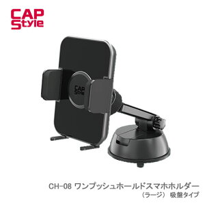 携帯関連CAPS CH-08 ワンプッシュホールドスマホホルダー(ラージ) 吸盤タイプ吸盤取付タイプのスマートフォンホルダーです。●指でアームを開き、スマートフォンの背面で中心のボタンを押すと自動的にアームが閉まり、スマートフォン