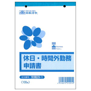 ●仕様/休日・時間外勤務申請書●サイズ/B6●品番/労務29−1●1セット=100枚入り●メーカー/日本法令●型番/ロウム29-1●JANコード/4976075512914※メーカー都合によりパッケージ・仕様等が予告なく変更される場合...
