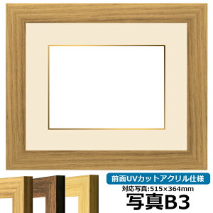 商品名 写真用額縁 8146 B3(515×364mm)専用 ナラ 前面UVカットアクリル仕様 マット付き(金色細縁付き) 色 ナラ その他の色 ブラウン 木地 商品情報 B3(515×364mm)専用...