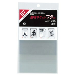 コレクト 透明ポケット フタ B7 CF-705JANコード:4971711119205品番:CF-705OPP製。規格:B7用。サイズ:横101×縦138×厚0.05mm。20枚入。