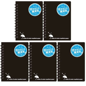アピカ レインガードメモ B7 黒 5個セット。中紙に撥水ペーパー、表紙にPP紙を使用した、水に強いメモ帳です。雨の日でも安心して使えます。サイズ:12.4×9×0.5cm。枚数:40枚。仕様:表紙=P.P....