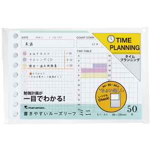 TIME PLANNING MINI ルーズリーフ 書きやすいルーズリーフ タイムプランニング ミニ L1438 『ルーズリーフミニ』のスタディプランナー。編集できるルーズリーフ・紙面の小さなミニタイプだから...
