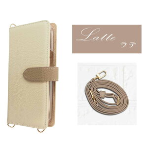 商品特徴・ショルダー付き手帳型スマホケース・シームレスな全面デザイン(内側は落ち着いたオフホワイト)・外側は高品質の人工革を使用・内側にはスマホを装着するケースが付属・機種専用のカメラホール仕様でケースを装着したまま