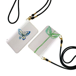 商品特徴・ショルダー付き手帳型スマホケース・シームレスな全面デザイン(内側は落ち着いたオフホワイト)・外側は高品質の人工革を使用・内側にはスマホを装着するケースが付属・機種専用のカメラホール仕様でケースを装着したまま