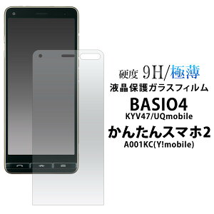 【対応機種】FOR BASIO4 KYV47 / A001KC かんたんスマホ2+ A201KC 専用 液晶画面保護ガラスフィルム。 【 表面硬度9H & 飛散防止 】ガラス素材で強い9Hの表面硬度を持っているため...