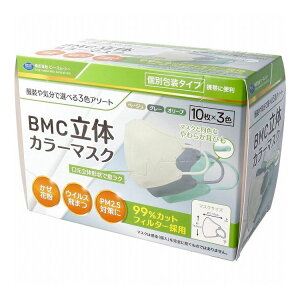 BMC 立体カラーマスク 個包装 商品説明 『BMC 立体カラーマスク 個包装』 服装や気分で選べる3色アソートのマスクです。 口元立体形状で息ラクラク。 携帯に便利で衛生的な個別包装です。 スタイリ...
