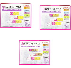 ビー・エム・シー BMC フィットマスク 60枚入 レディース&ジュニア メガネが曇りにくい立体構造、耳が痛くなりにくい超ふわふわ耳ゴム 女性用 ジュニア用 マスク 4580116956393...