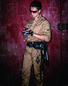 ◎水や油をはじきストレッチ機能が動きをサポート ●素材/高密度ツイル・スーパー撥水加工・制電・ストレッチ ●混率/ポリエステル100% ●両脇ツインループ・ペンさし(右) ●サイズチップ(左)・ピスフラップ(左・マジックテープ止め)