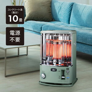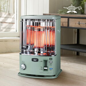 「切タイマー」付、電源不要で停電時でも使える石油ストーブ。レトロな佇まいと、アラジングリーンのカラーが可愛らしい、デザイン性・機能性の両方を持ち合わせた石油ストーブです。