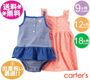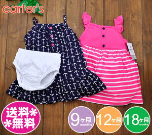 ←画像をクリックすると拡大画像がご覧頂けます。 毎年色柄を変えて発売される、人気のデザインです。 カーターズ/Carter'sのノースリーブワンピース2ピースセット(2枚セット)です。ボーダー柄と、水玉です。紺無地のアンダーショーツ付