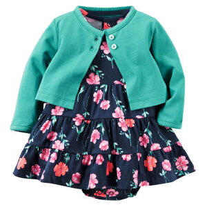 ←画像をクリックすると拡大画像がご覧頂けます。 カーターズ/Carter'sのワンピースと長袖カーディガンの2ピースセット(2枚組セット)です。 紺地にお花フラワー柄のワンピースは、ビルトインタイプ。...
