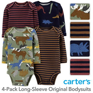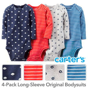 【商品説明】 楽天人気ランキング「ベビー用肌着総合部門」1位獲得!お休みからお出かけまで毎日使えるから、何着あっても嬉しいカーターズ4枚組長袖ボディースーツです。 Tシャツのようなしっかりとした生地を使用していますので、吸