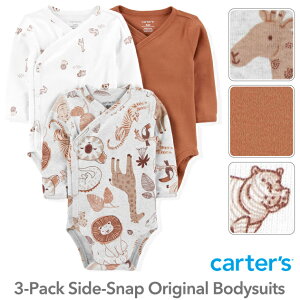 ←画像をクリックすると拡大画像がご覧頂けます。 毎年色柄を変えて発売される、人気のデザインです。 カーターズの定番人気商品ボディスーツ7枚セットです。薄手で伸縮性のあるリブコットン、襟タグプリントでお肌に優しく、股下はス