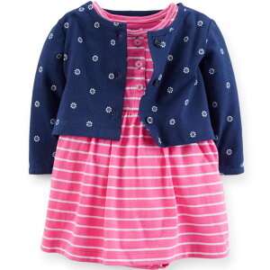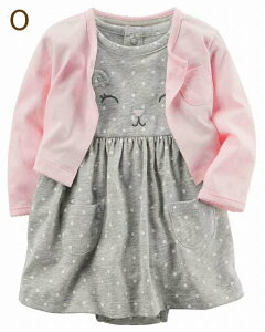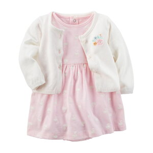 カーターズ/Carter'sの長袖カーディガンと半袖ワンピースの2ピースセットです。ワンピースは、ビルトインタイプ。ロンパースにスカートが付いたデザインです。