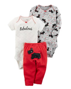 ←画像をクリックすると拡大画像がご覧頂けます。 カーターズ/Carter'sの3点セットです。お尻アップリケ付きパンツと、半袖や長袖のボディスーツ、半袖Tシャツとのセットです。全て通年素材のコットン/綿100%です...