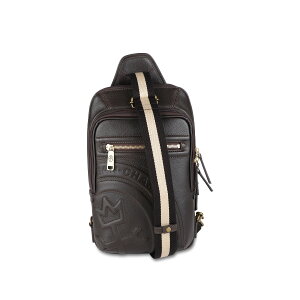 【「丈夫で長持ちする服を目指し、決して流行の服は作らない。」をモットーにポップでグラフィカルなイラストのブランド CASTELBAJAC】 ソフトで軽量なシュリンク調の牛革を使用したボディバッグ。立体的に家紋を浮き上がらせた